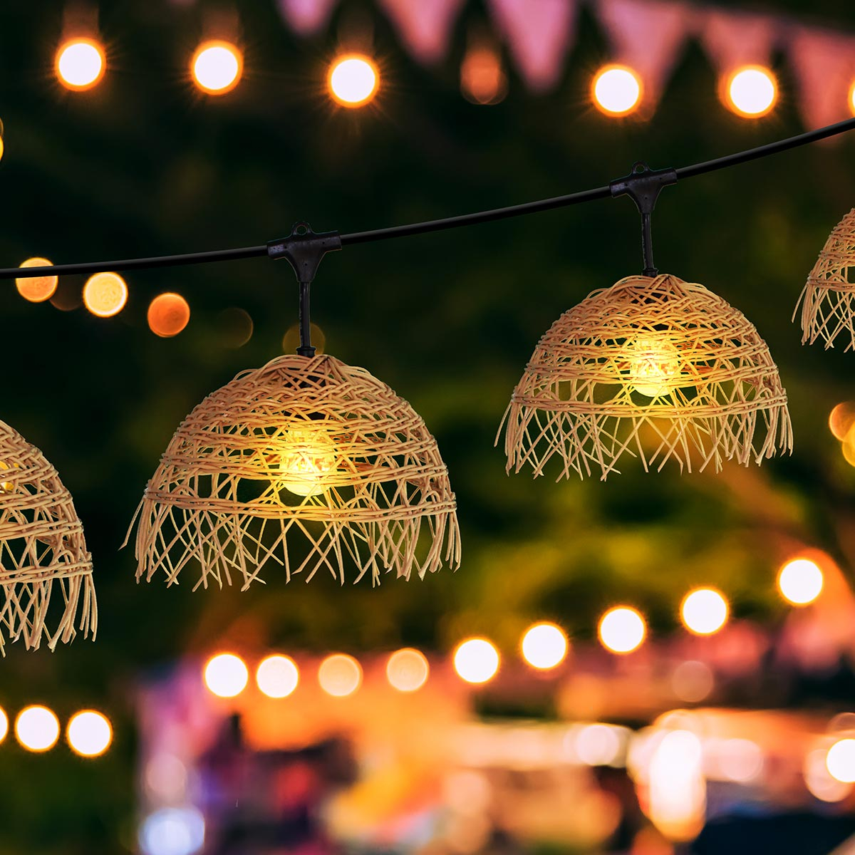 Abajururile decorative din poliratan (ratan sintetic) oferă un design boem, elegant și exotic, potrivit atât pentru decor modern, cât și pentru evenimente speciale în aer liber.