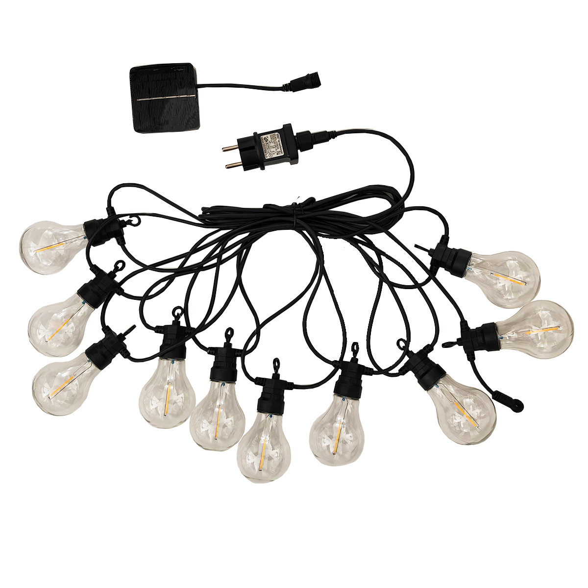 Transformă instant atmosfera oricărui spațiu cu PARTY CLEAR HYBRID, o ghirlandă luminoasă de exterior cu 10 globuri transparente și lumină LED alb cald, ideală pentru seri relaxante, petreceri, terase, grădini sau decor interior de accent.