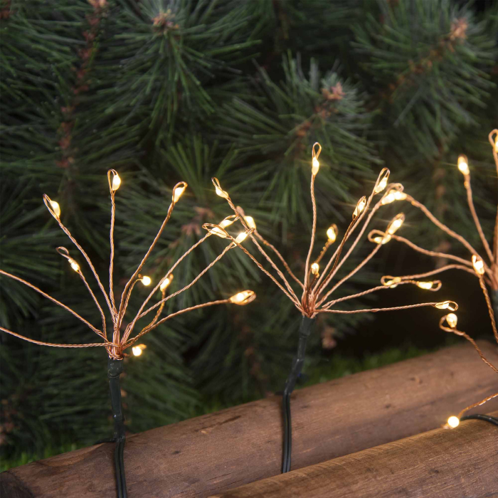 Fiecare element luminos este format din mai multe fire flexibile cu LED-uri miniaturale dispuse radial, imitând un mic spectacol de artificii.