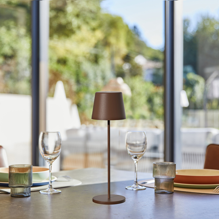 Lampă de masă tactilă fără fir KELLY VINTAGE din aluminiu maro, LED alb reglabil, H38 cm, IP54