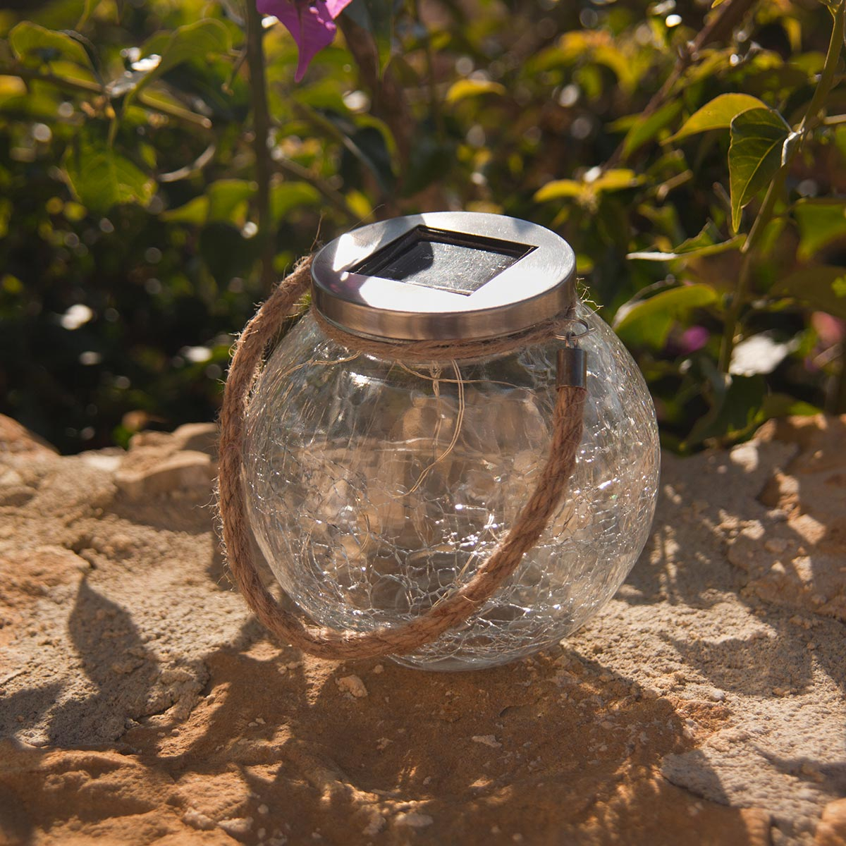 Fiecare lampă este prevăzută cu mâner din sfoară, ceea ce le face ușor de transportat, mutat sau agățat. Funcționează 100% solar, fără cabluri, fără consum de energie electrică.