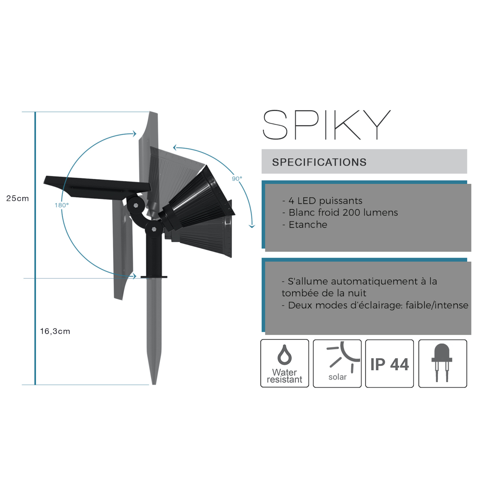 Iluminează-ți grădina, aleile sau terasa cu pachetul 2x SPIKY W34, două spoturi solare LED puternice, cu lumină alb rece și autonomie impresionantă de până la 12 ore. Designul lor modern și forma subțire le transformă în soluția ideală pentru un iluminat exterior elegant și eficient.